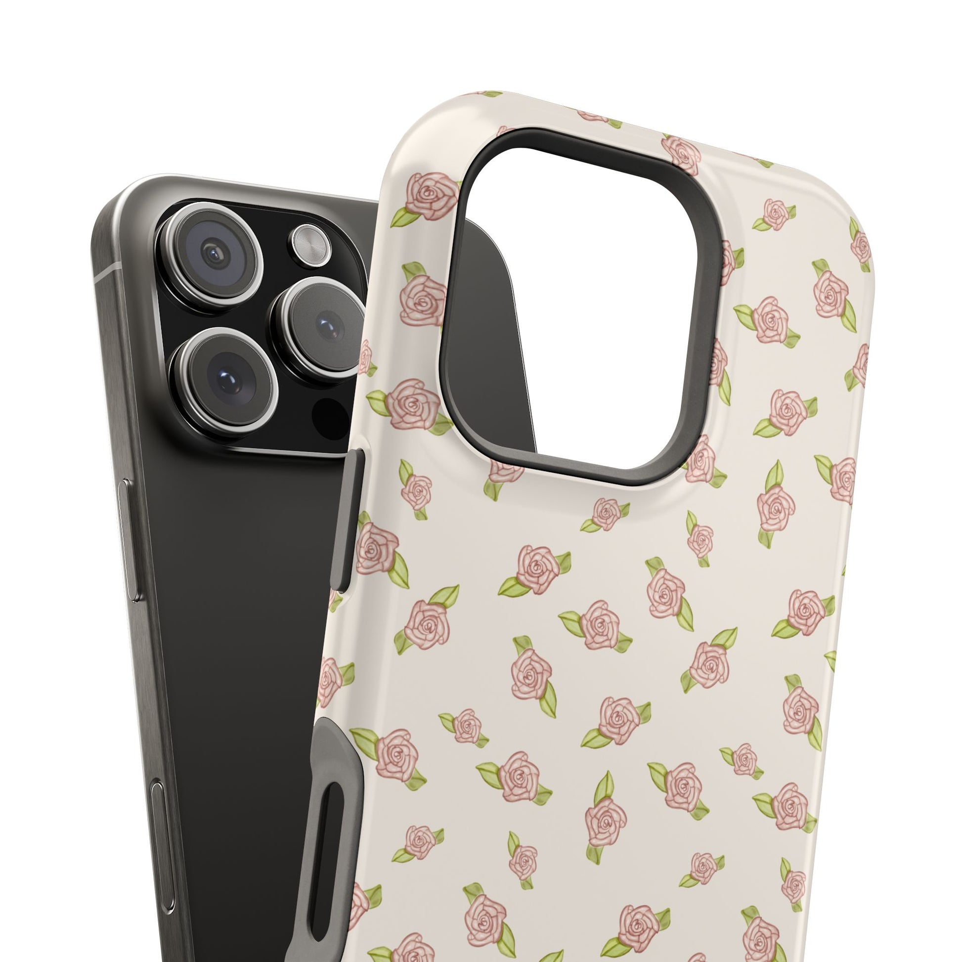 Antique White Coquette Pink Rosettes, MagSafe Magnetic Tough Cases, Phone Accessories, Unique Gifts, Protective Phone Covers, Floral Design