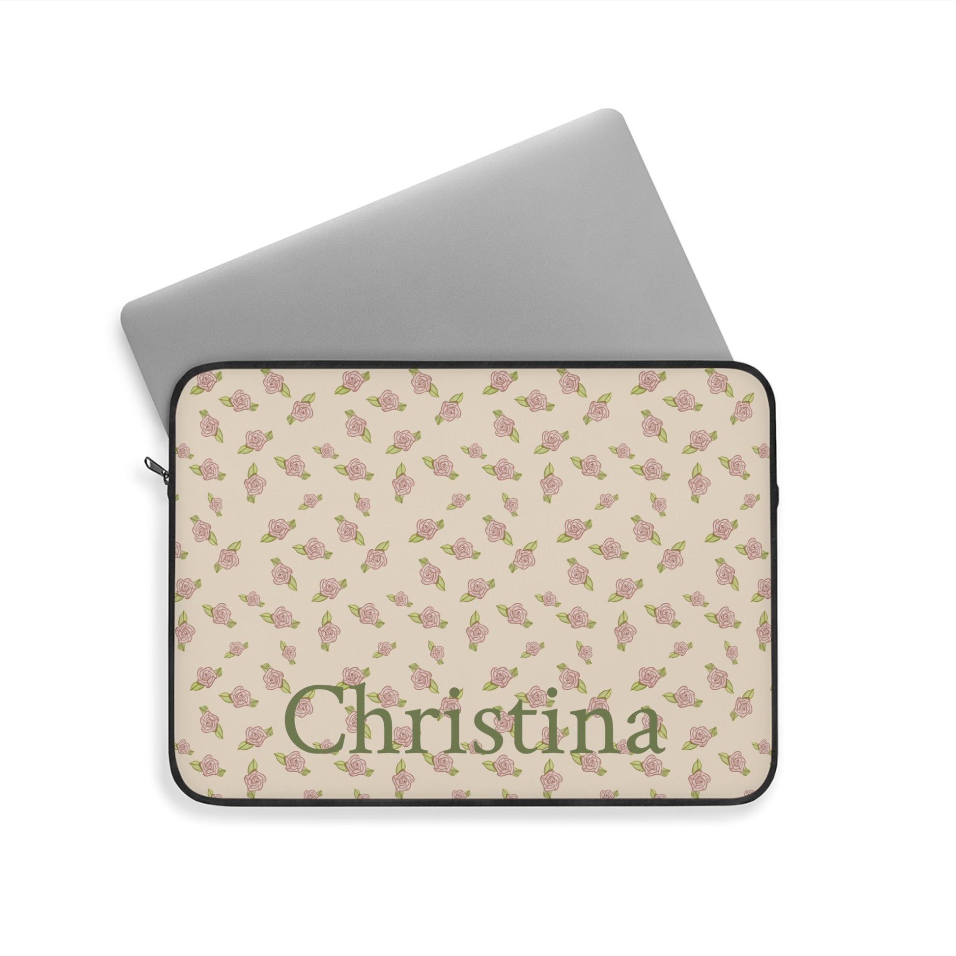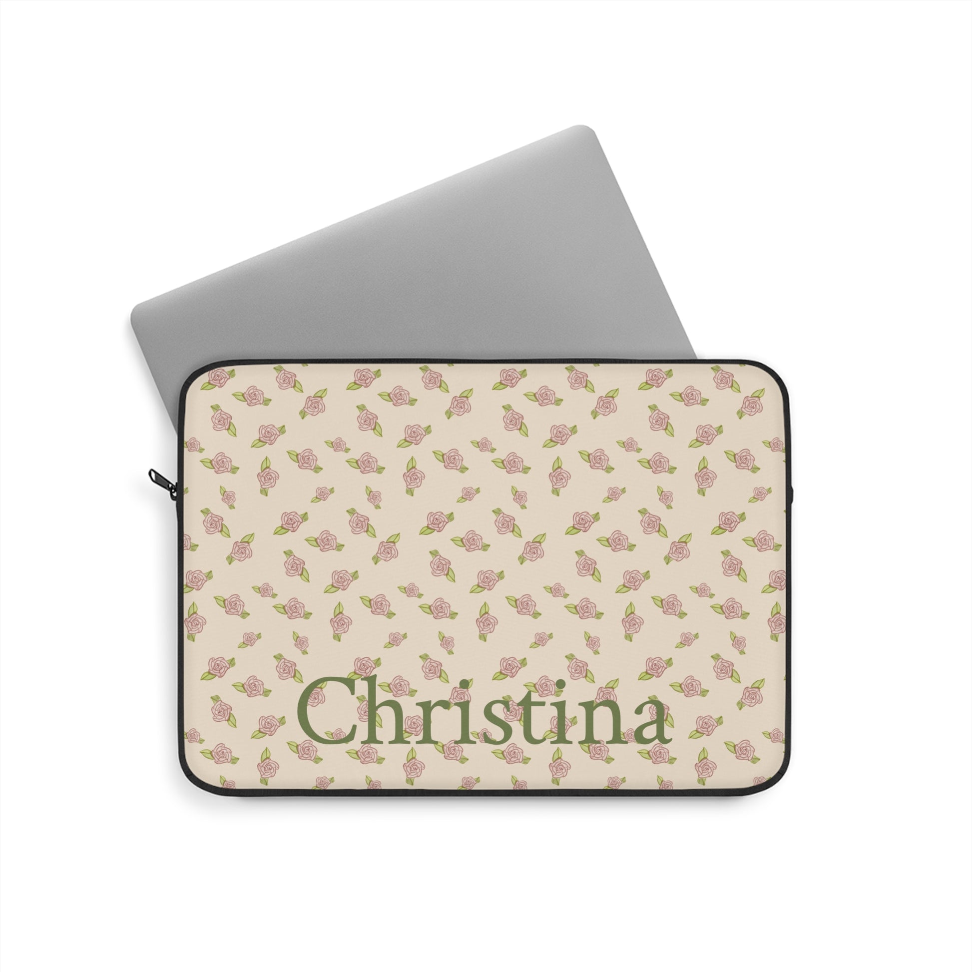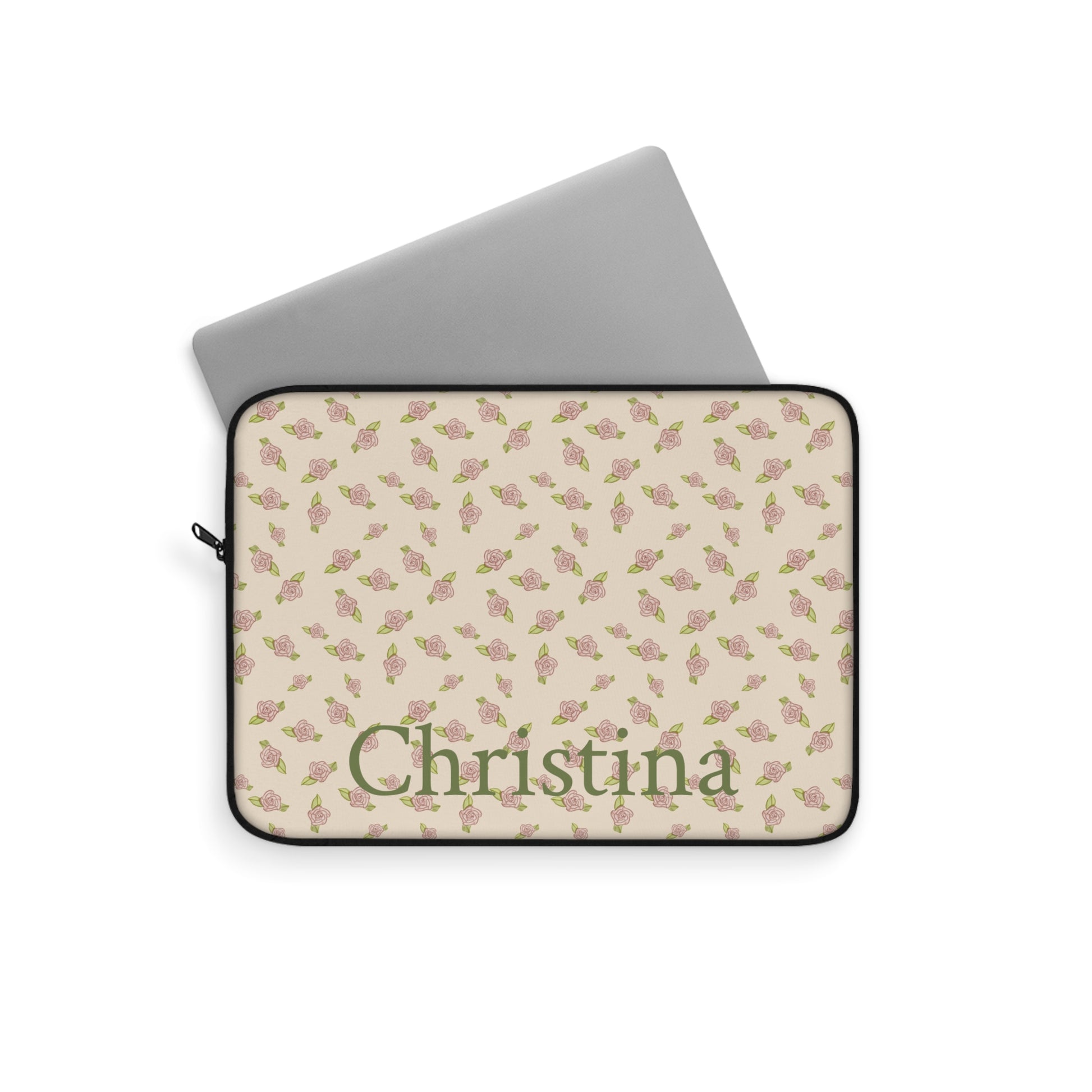 Antique White Rose Pattern Laptop Sleeve, Protective Computer Cover, Tech Accessories, Tablet Bag, Padded Case