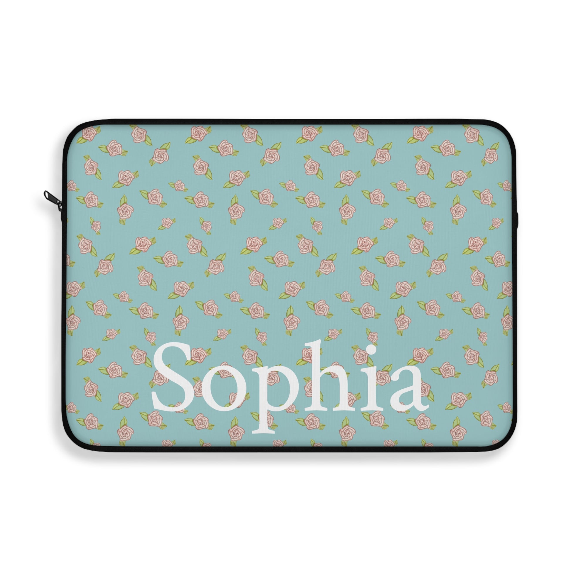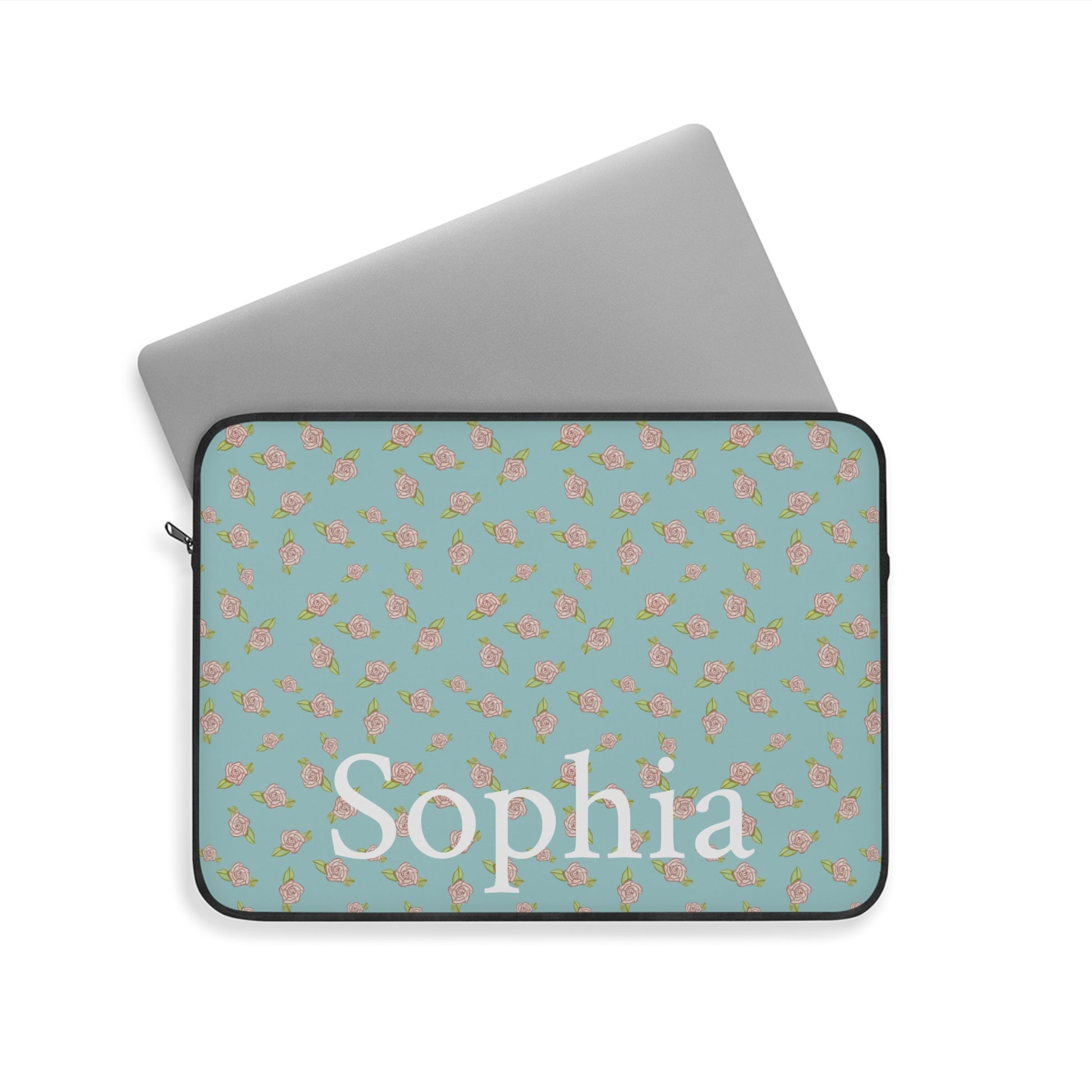 Blue Rose Coquette Pattern Laptop Sleeve, Personalized Protective Computer Cover, Tech Accessories, Tablet Bag, Padded Case