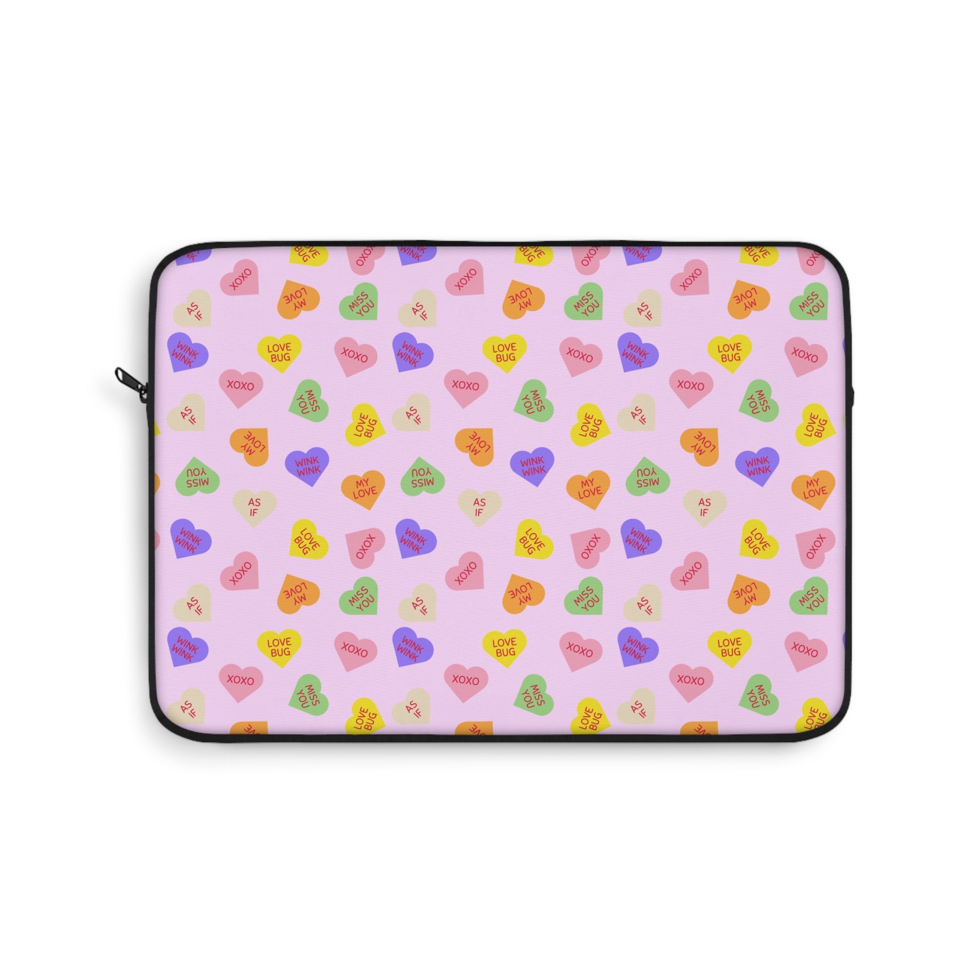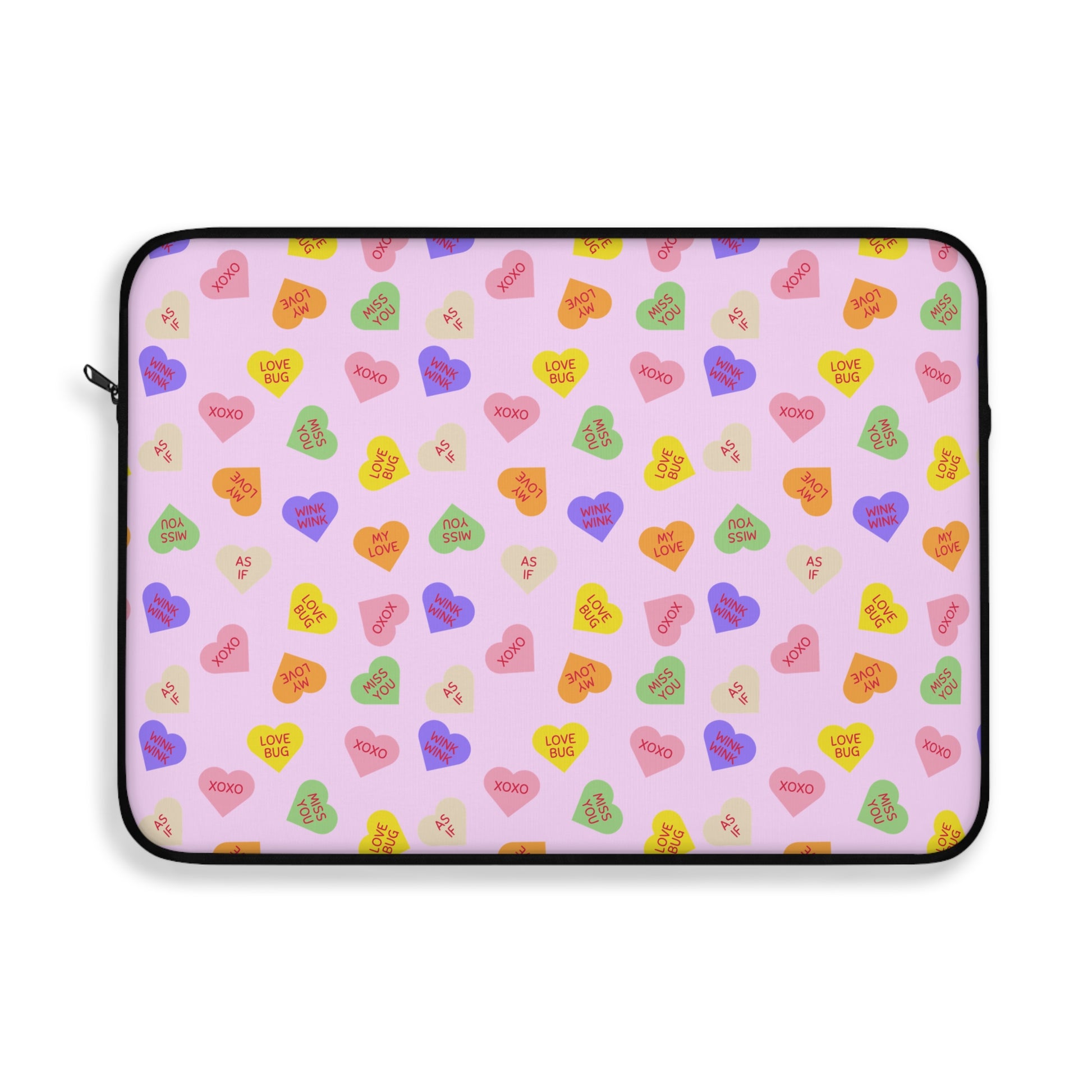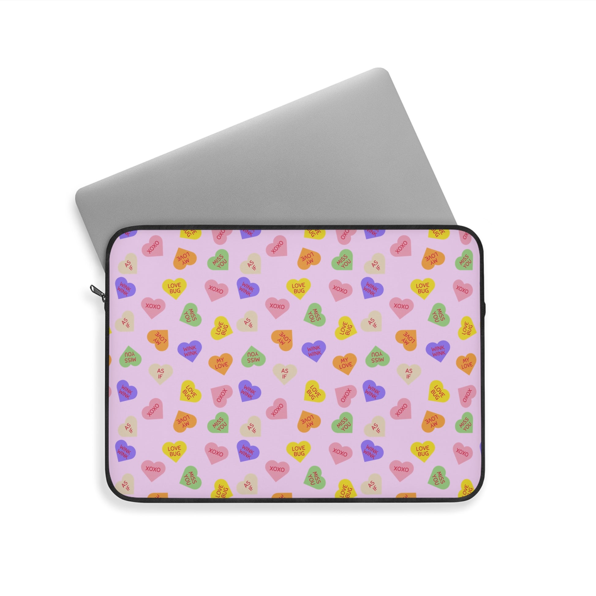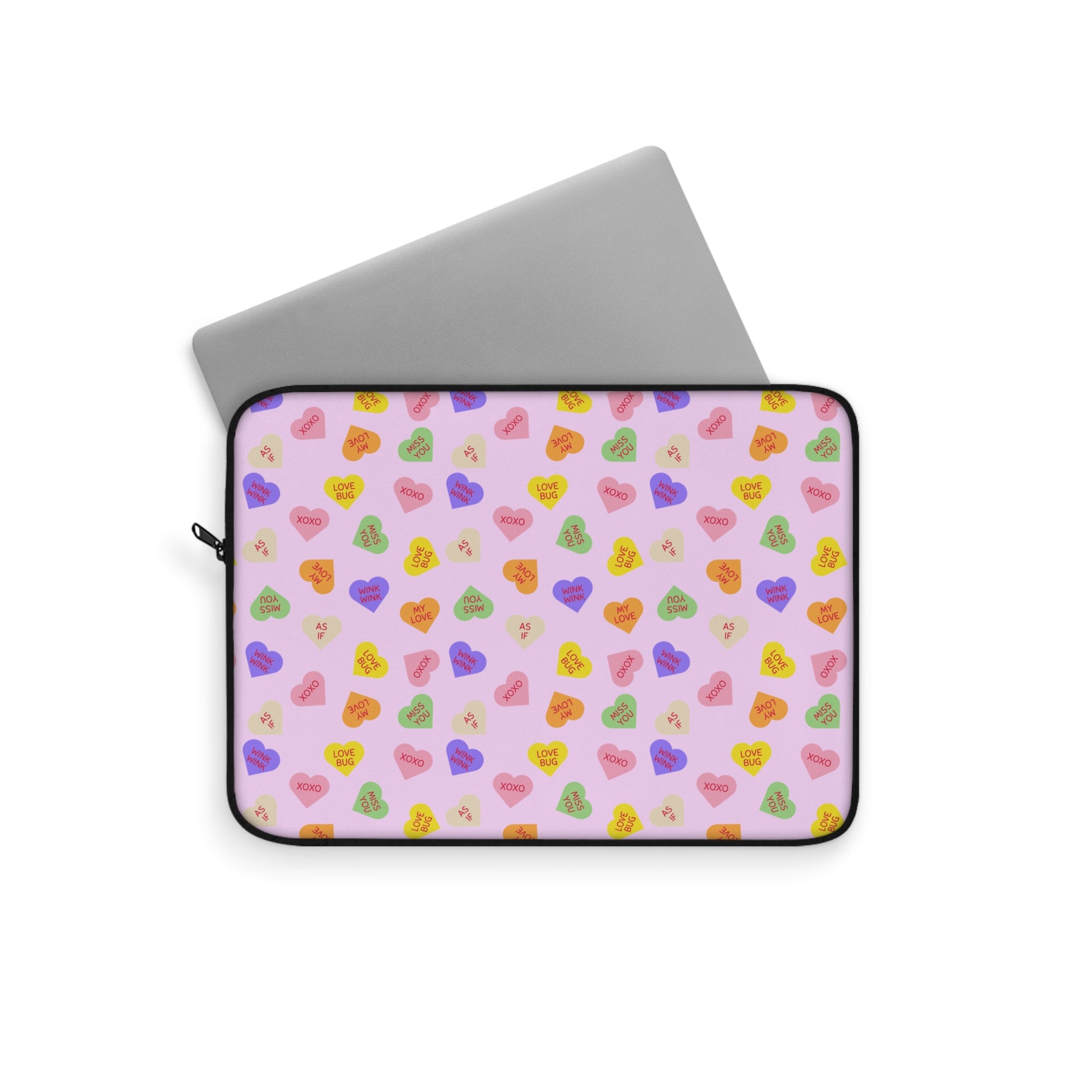 Sweet Candy Hearts Laptop Sleeve in Strawberry Pink, Protective Computer Cover, Tech Accessories, Valentine Padded Case, Tablet Bag, Case
