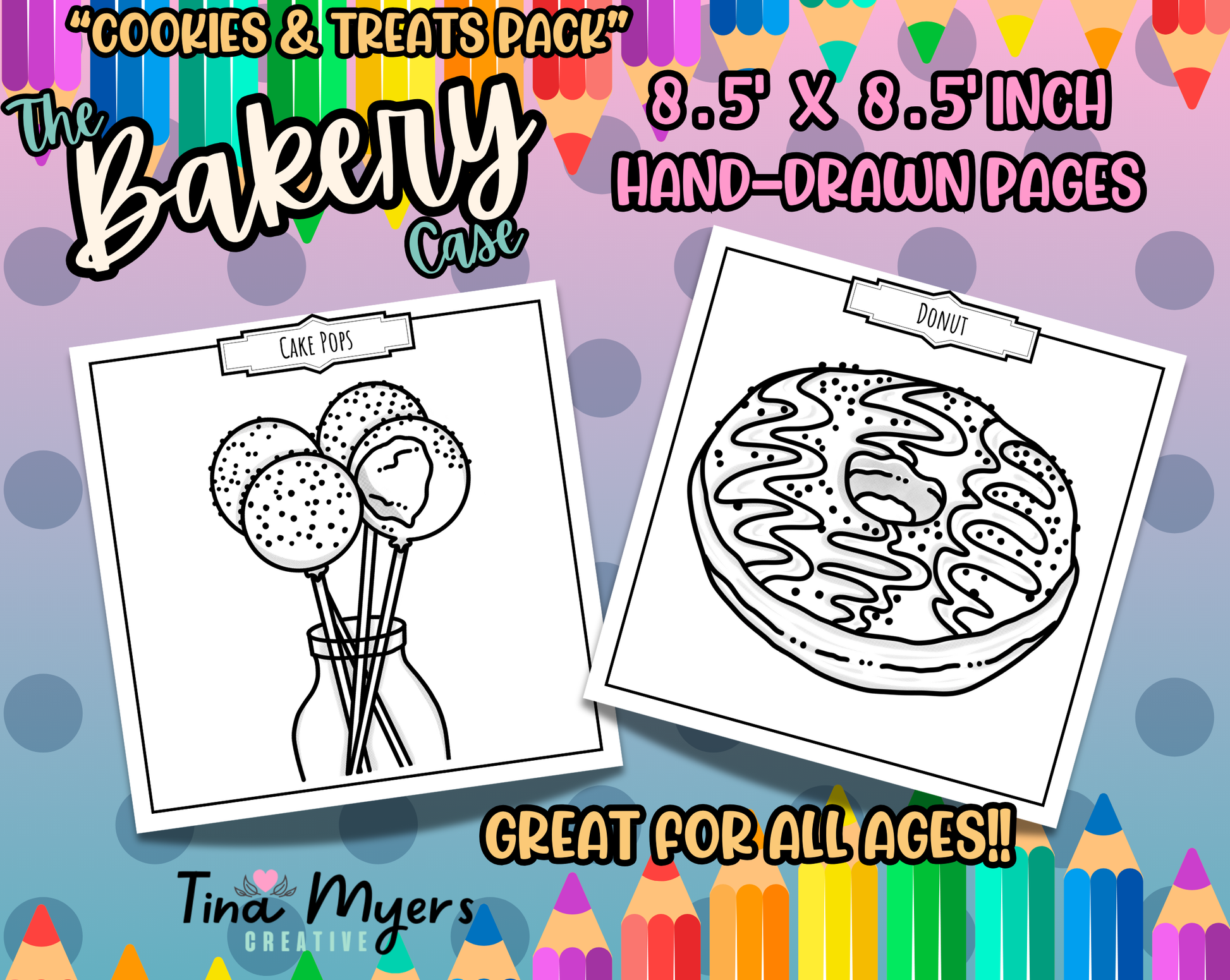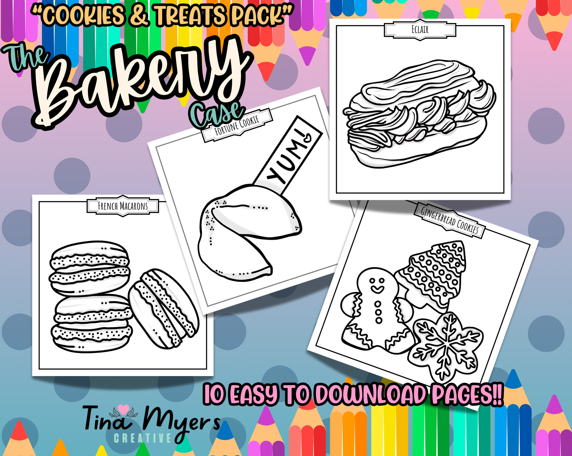 COMING SOON!! The Bakery Case - "Cookies & Treats" 10 pack of digital coloring pages, digital download @TinaxColors