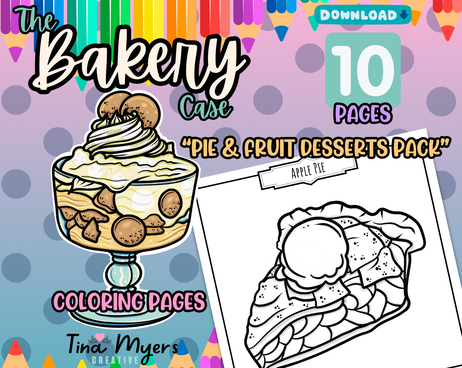 COMING SOON!! The Bakery Case - "Pie and Fruit Desserts" 10 pack of digital coloring pages, digital download @Tinaxcolors
